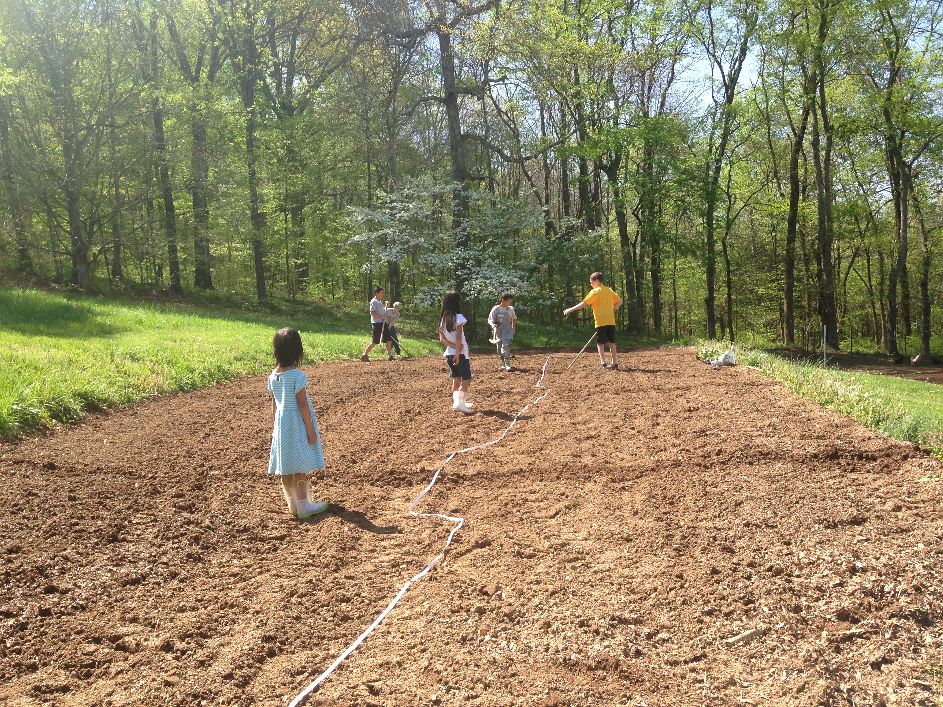 IMG_9353 The kids bought into it hook, line and sinker as they say. They will get a great lesson in getting out of something what they put into it! They even worked together to divide the garden into six sections. We of course put them in order from oldest to youngest.