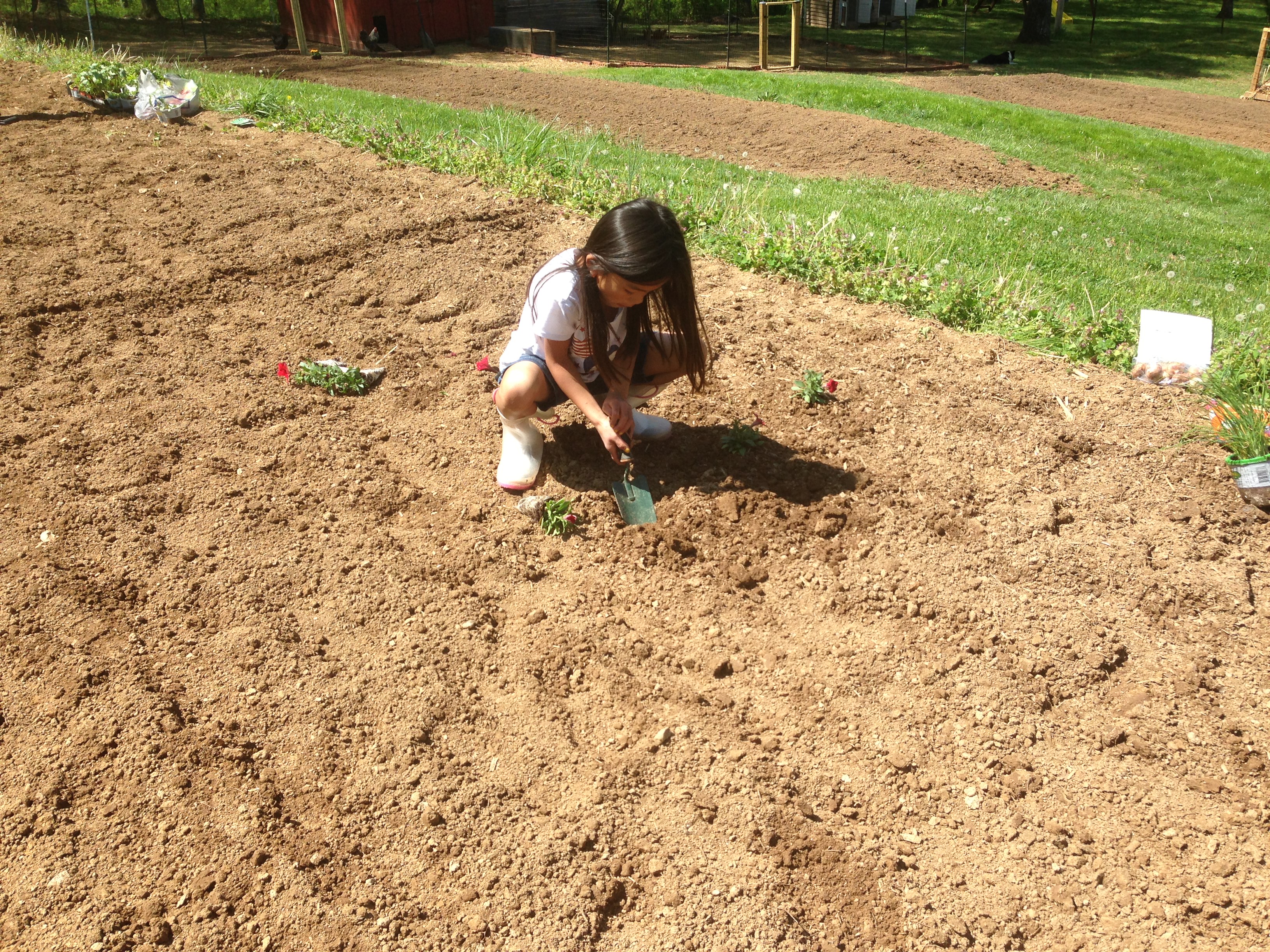 Yesterday five of our six children and I planted the second half of it. One of them refused to help, but that is another post for another day. If anyone reading thinks the Prez and I have this parenting adventure figured out, please think it no more. We struggle with it every single day, especially with some of the stronger-willed sons.