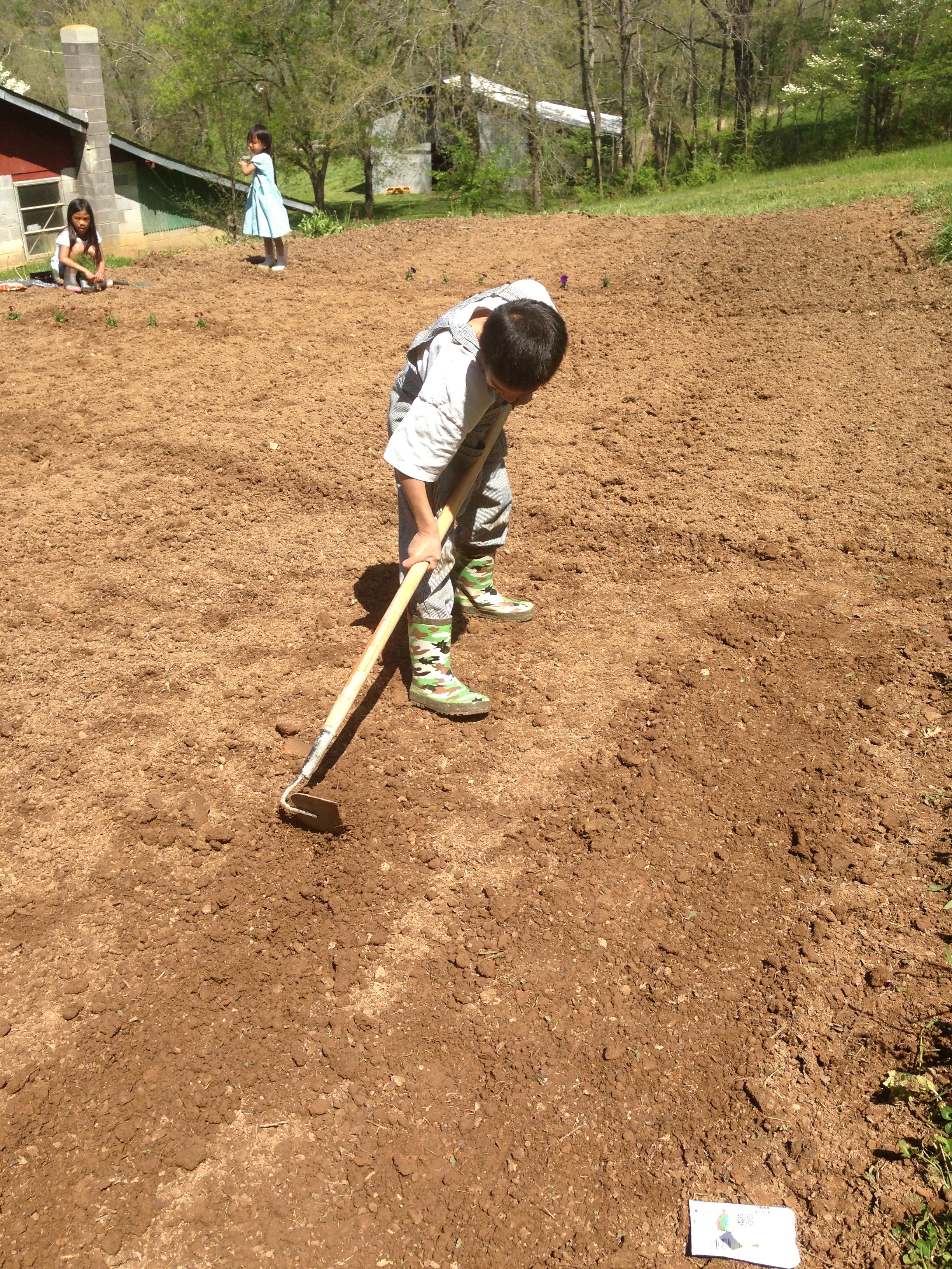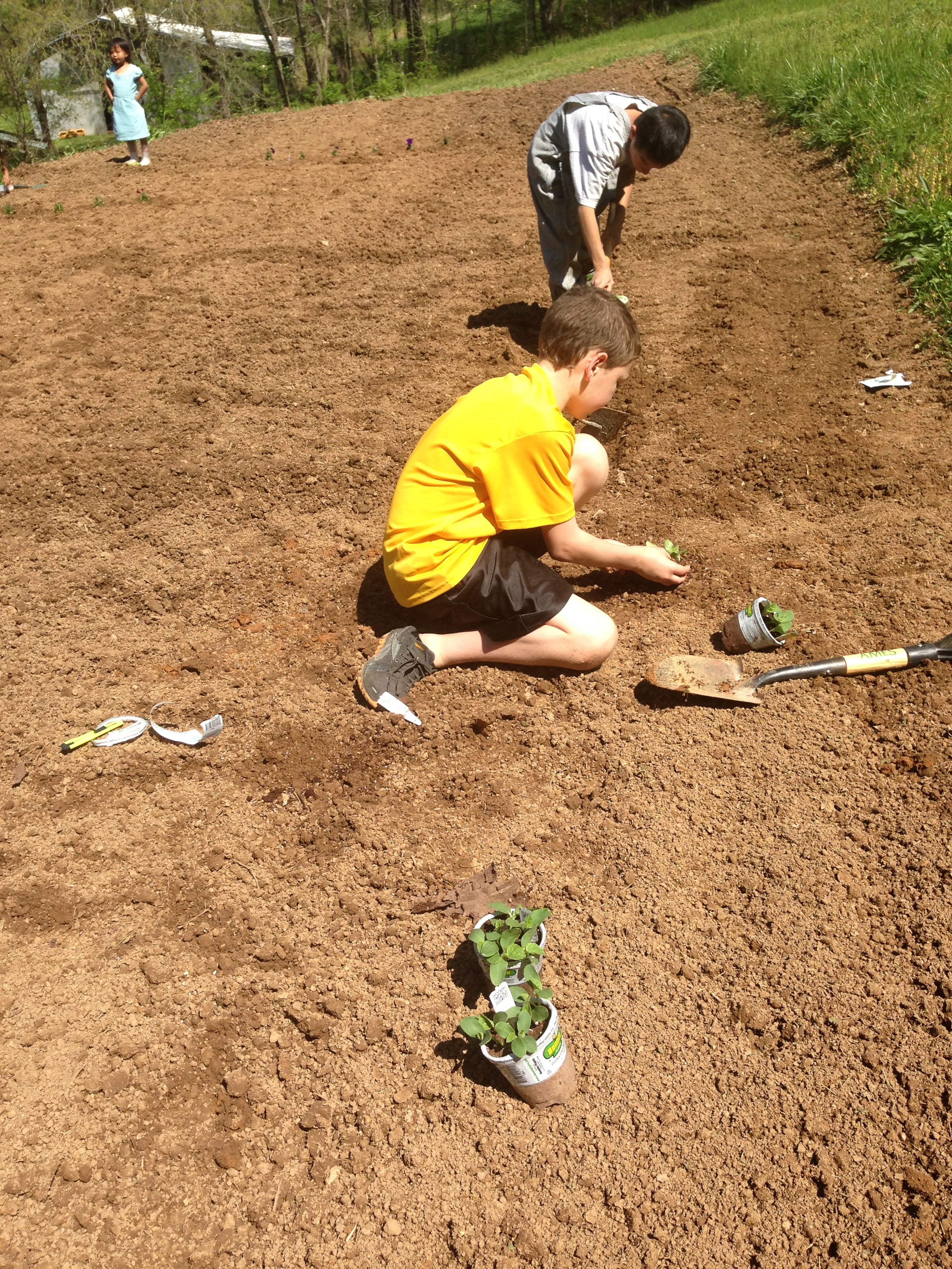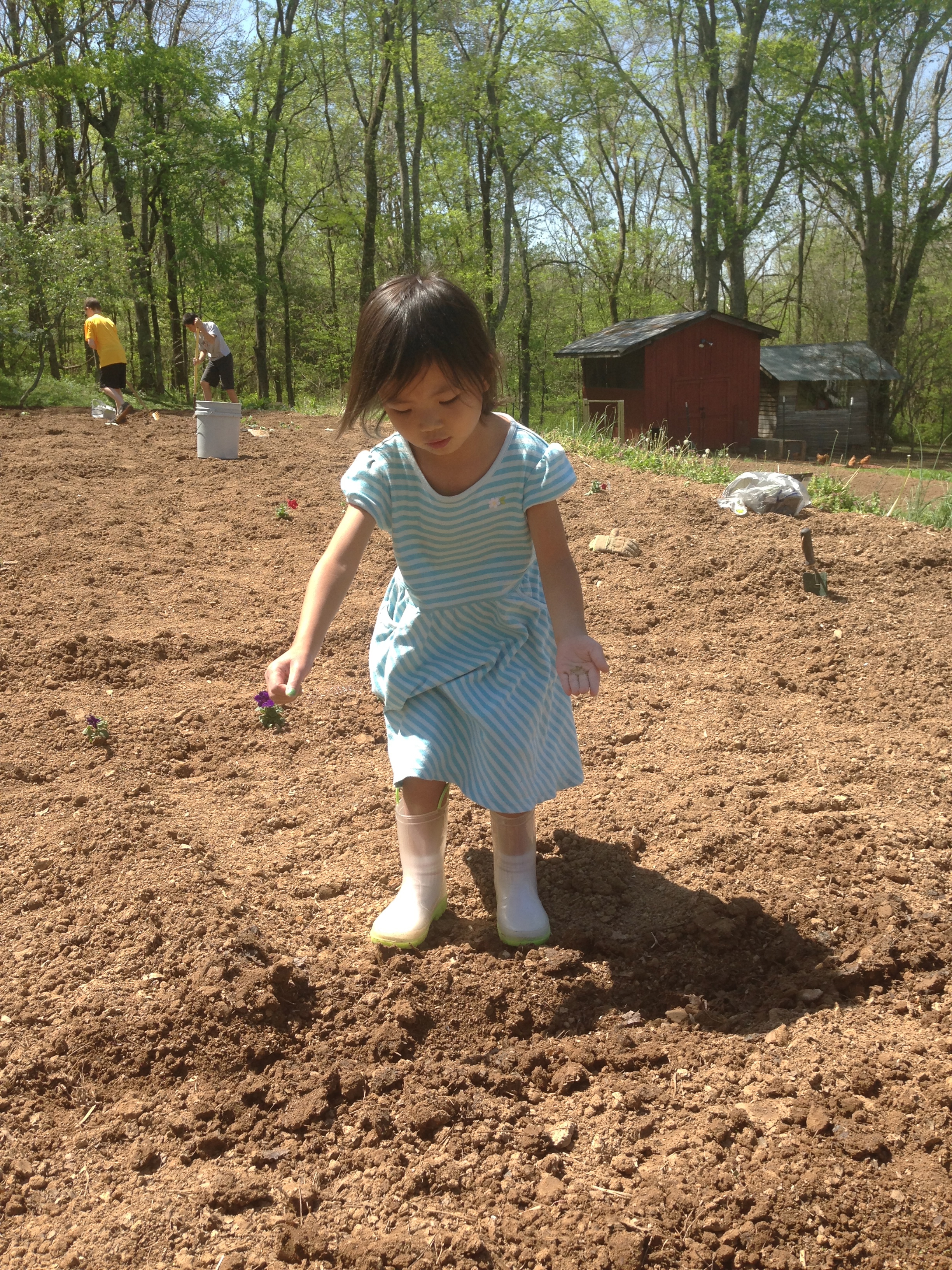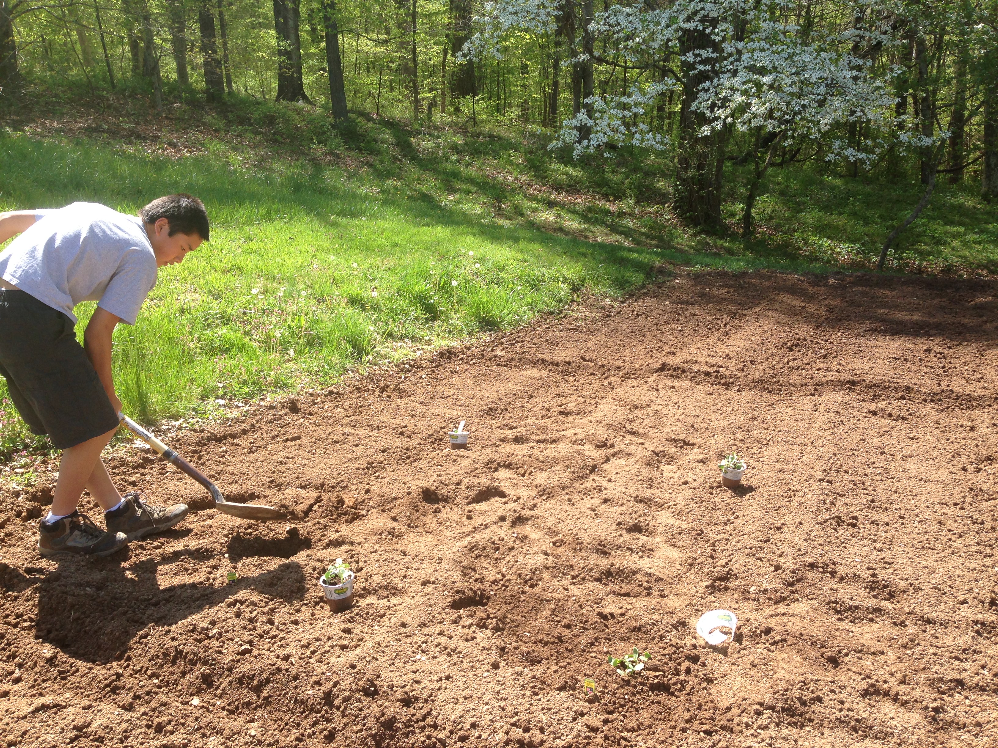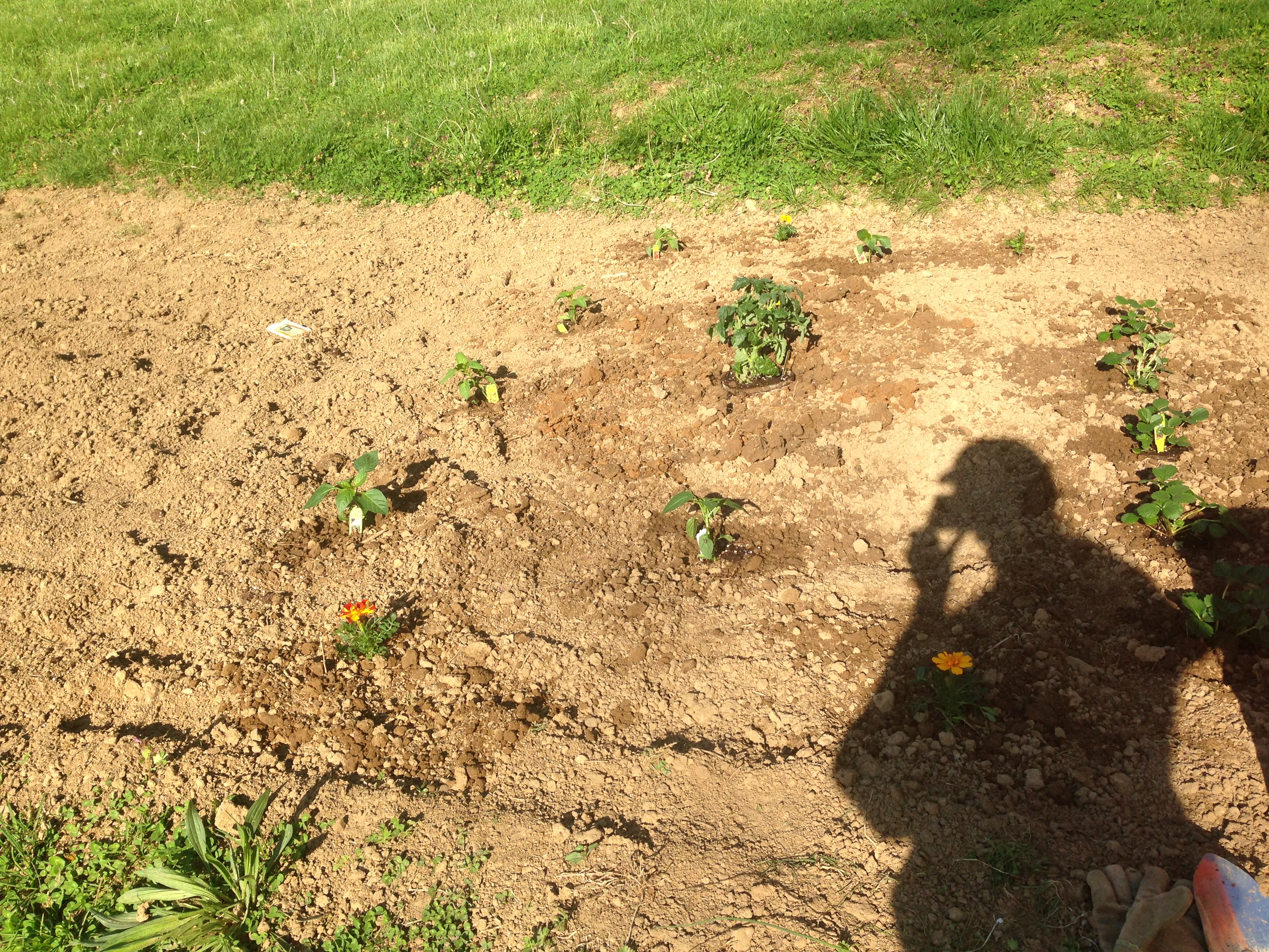 One warm morning we worked hard to plant our respective garden plots. I was actually just helping in the morning. Later that evening, the Prez and I planted some more plants and seeds in the lower two garden plots.