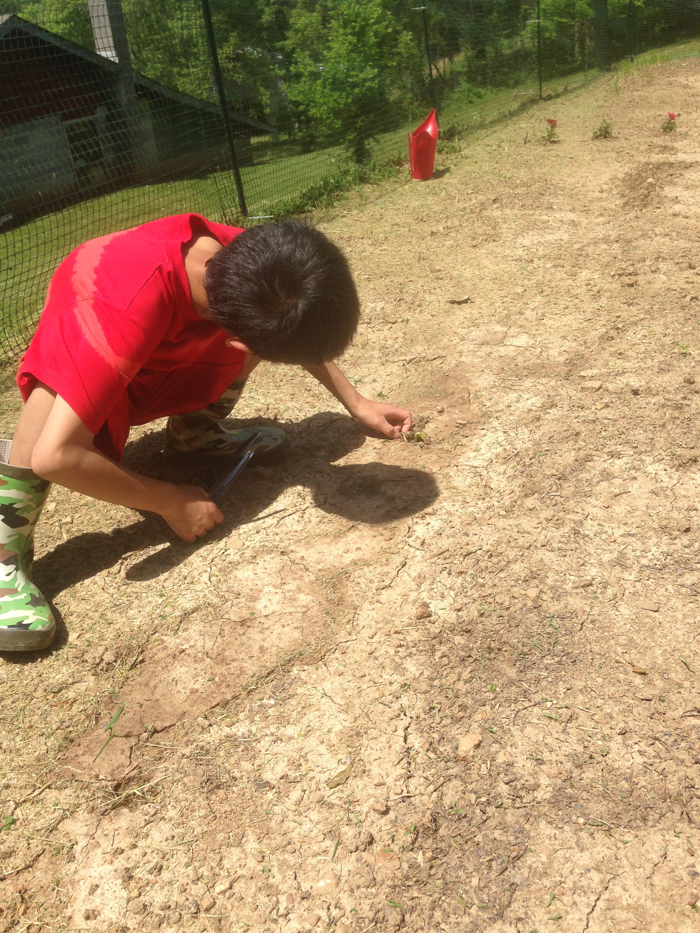 IMG_9558IMG_9559IMG_9561This week Li’l Bro discovered his bean seeds had sprouted! We had a 5-inch rain in half a day last week and we feared the worst for some of the seeds.