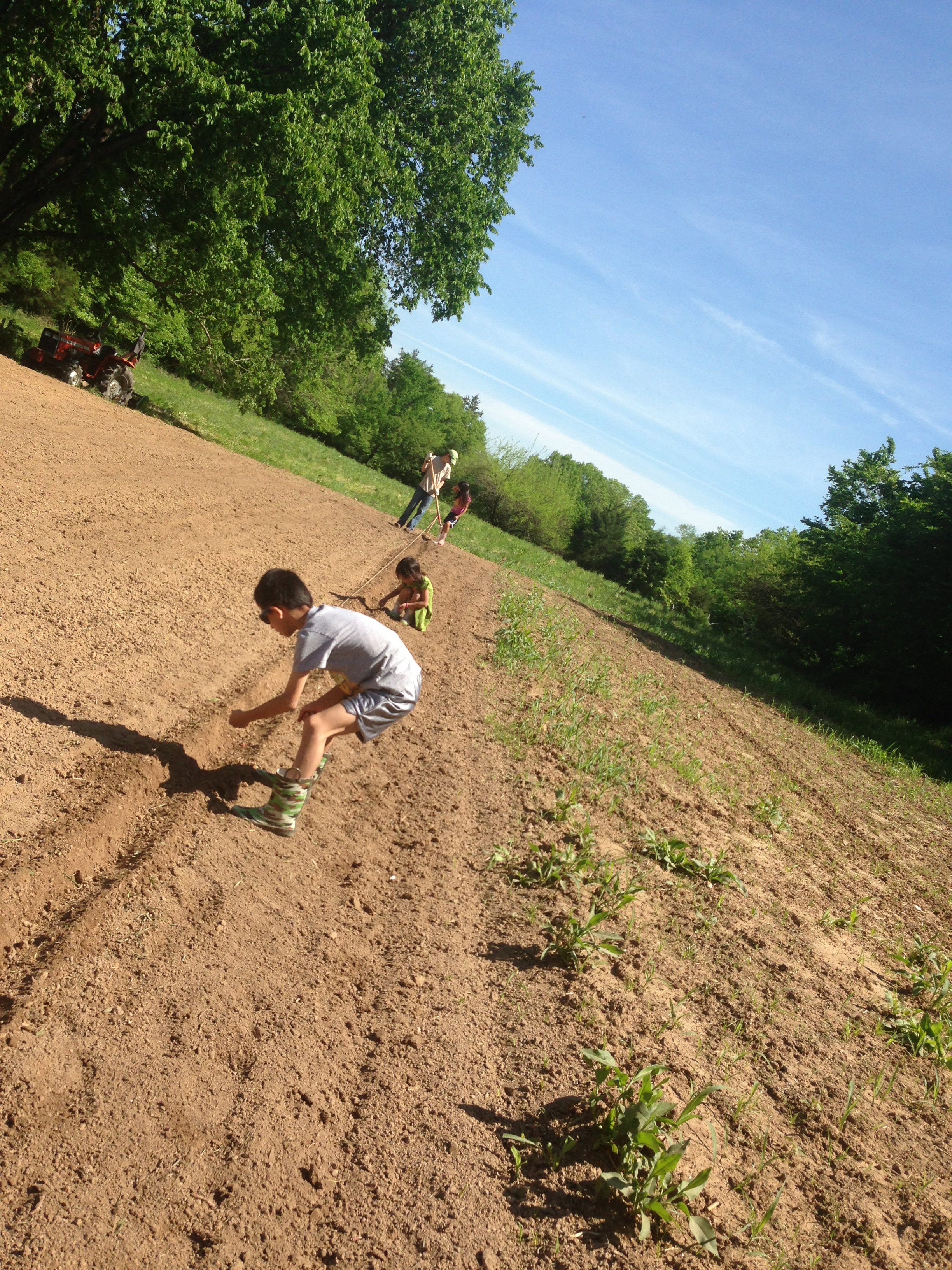 IMG_9451IMG_9449I wish I knew the size of this garden, but suffice it to say it is VERY large. Now we have 10 1/2 rows of corn planted 5 feet apart, so we can till in-between the rows. We planted it in two sections a couple of weeks apart, so hopefully it doesn’t all come in on the same day! If it does and you know us in real life, come on over and pick you some!