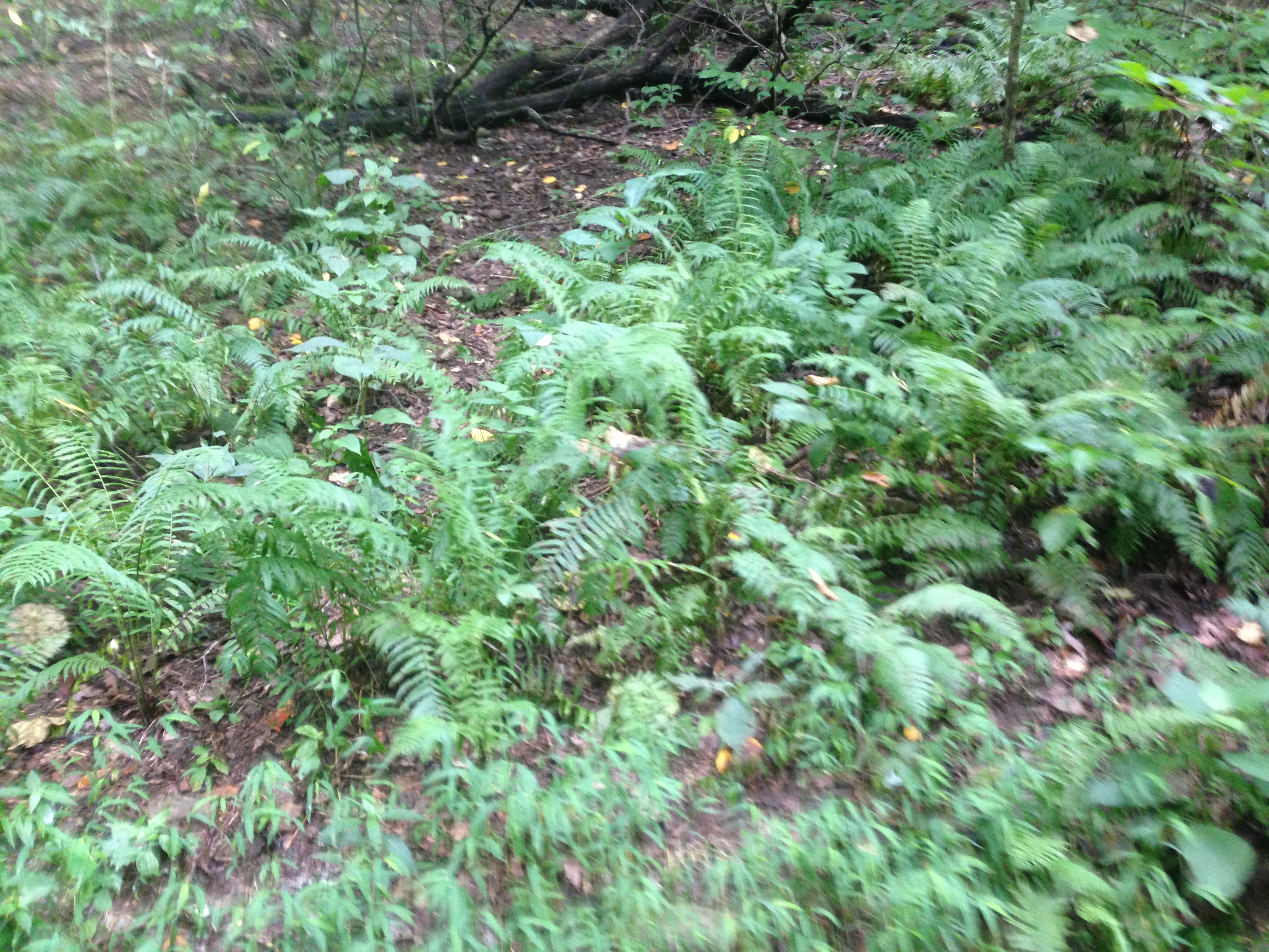 This blurry photo is included because we found all three in one spot: lichens on the side of the trunk, moss growing along the bottom, and ferns in the foreground!