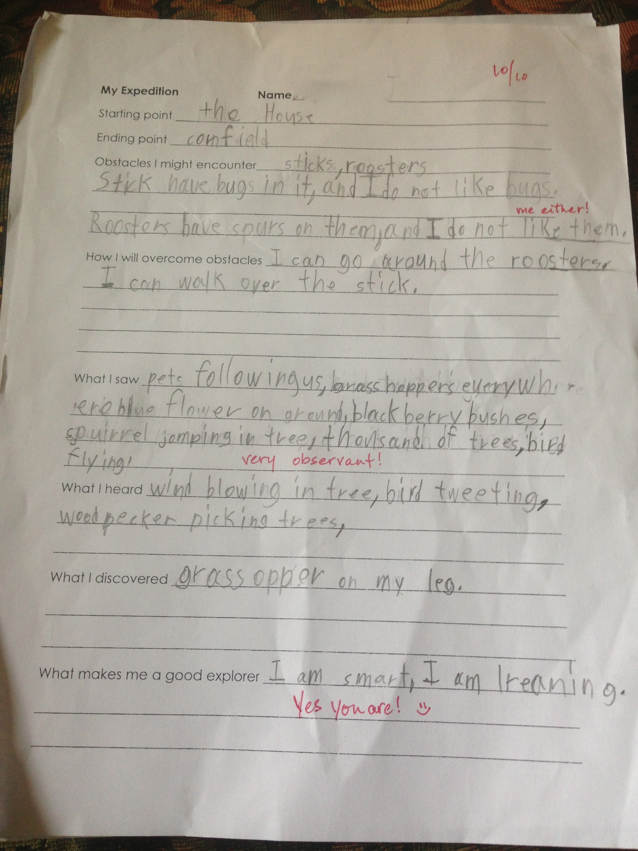 I had to snap pics of Li’l Bro’s and Li’l Miss’s Expedition reports. I took notes for them on my iPhone as we explored, and they had no trouble saying things they were seeing, hearing and discovering as we “traveled” on our journey!