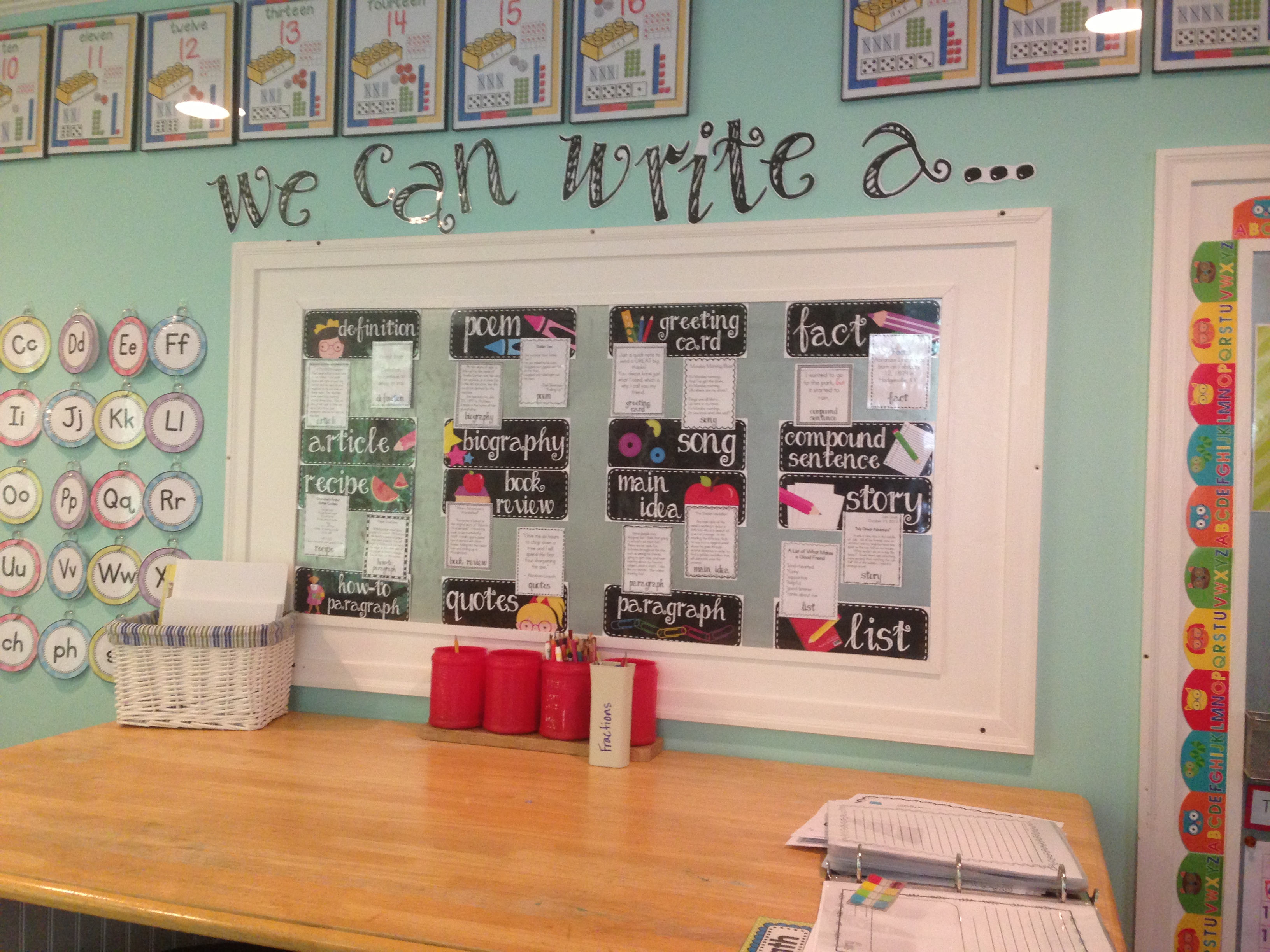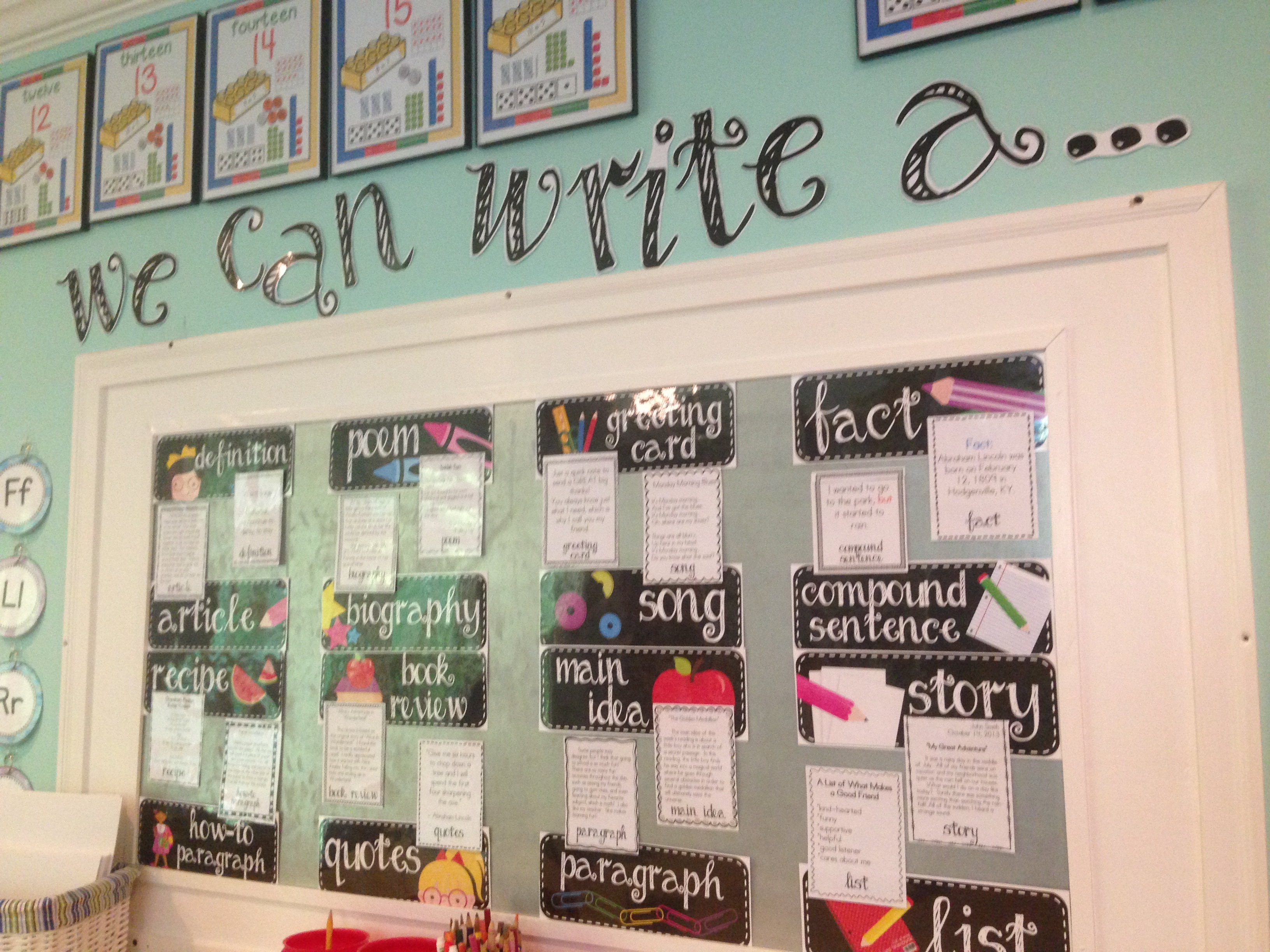 I started working on our new “I Can Write A … ” board on Tuesday.