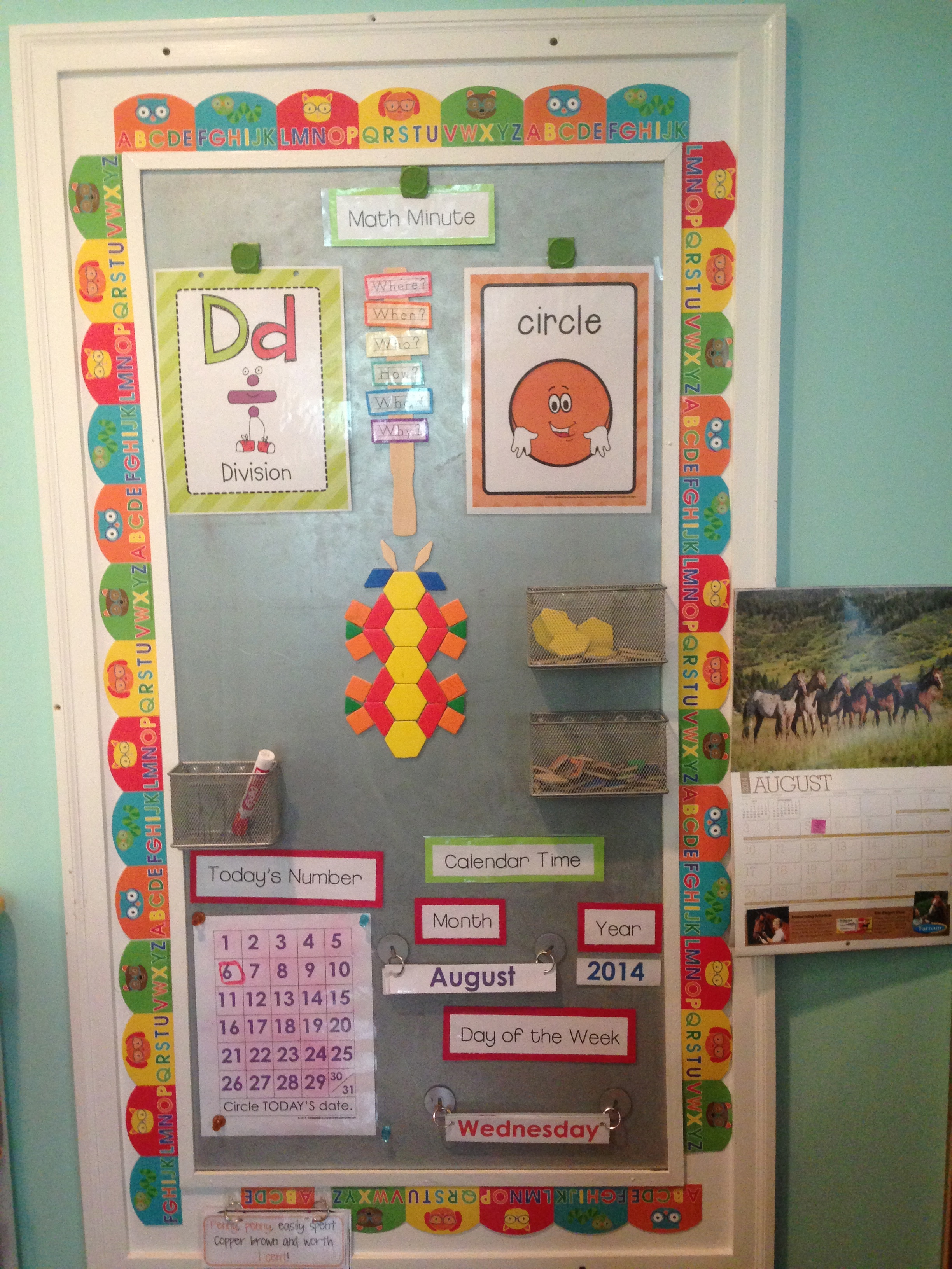 Since I switched things up to make room for our Interactive Writing Center, I moved our Interactive Calendar to the other metal bulletin board. It is now our Math board, and I love the way it has turned out!