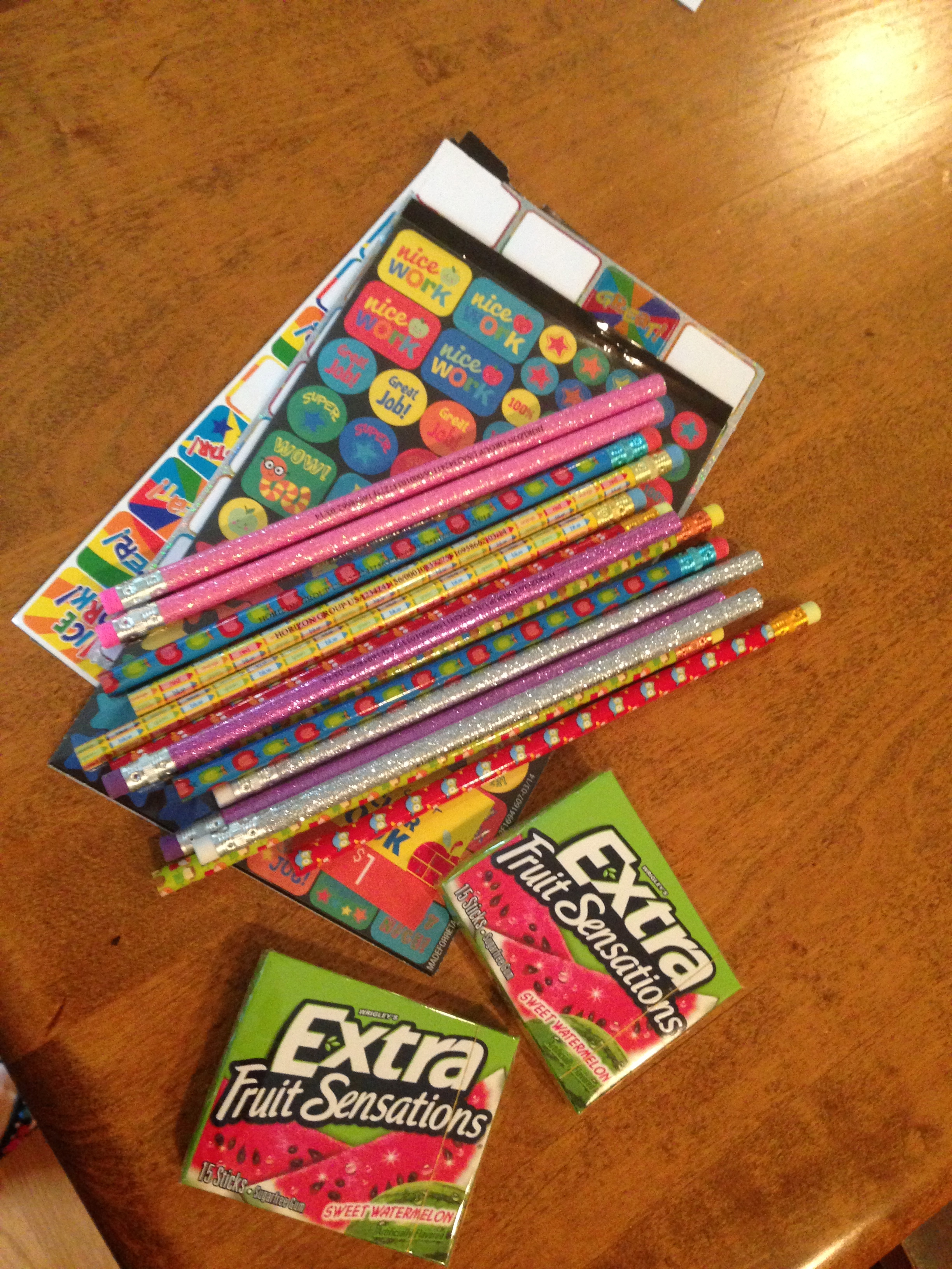 I printed it all out and read the directions. It didn’t take too long to set it all up. I initially set it up for just our two 3rd graders, but then a certain Li’l Bit thought she certainly needed to be held responsible for her pencils so she got in on the action too. They were most excited when I show them some INCENTIVE to keep those pencils in the pouch when not in use! We shall see, but if their enthusiasm is any indication we’re on our way. A funny: the 10th grader from across the room: May I get treats if I keep up with my pencils?