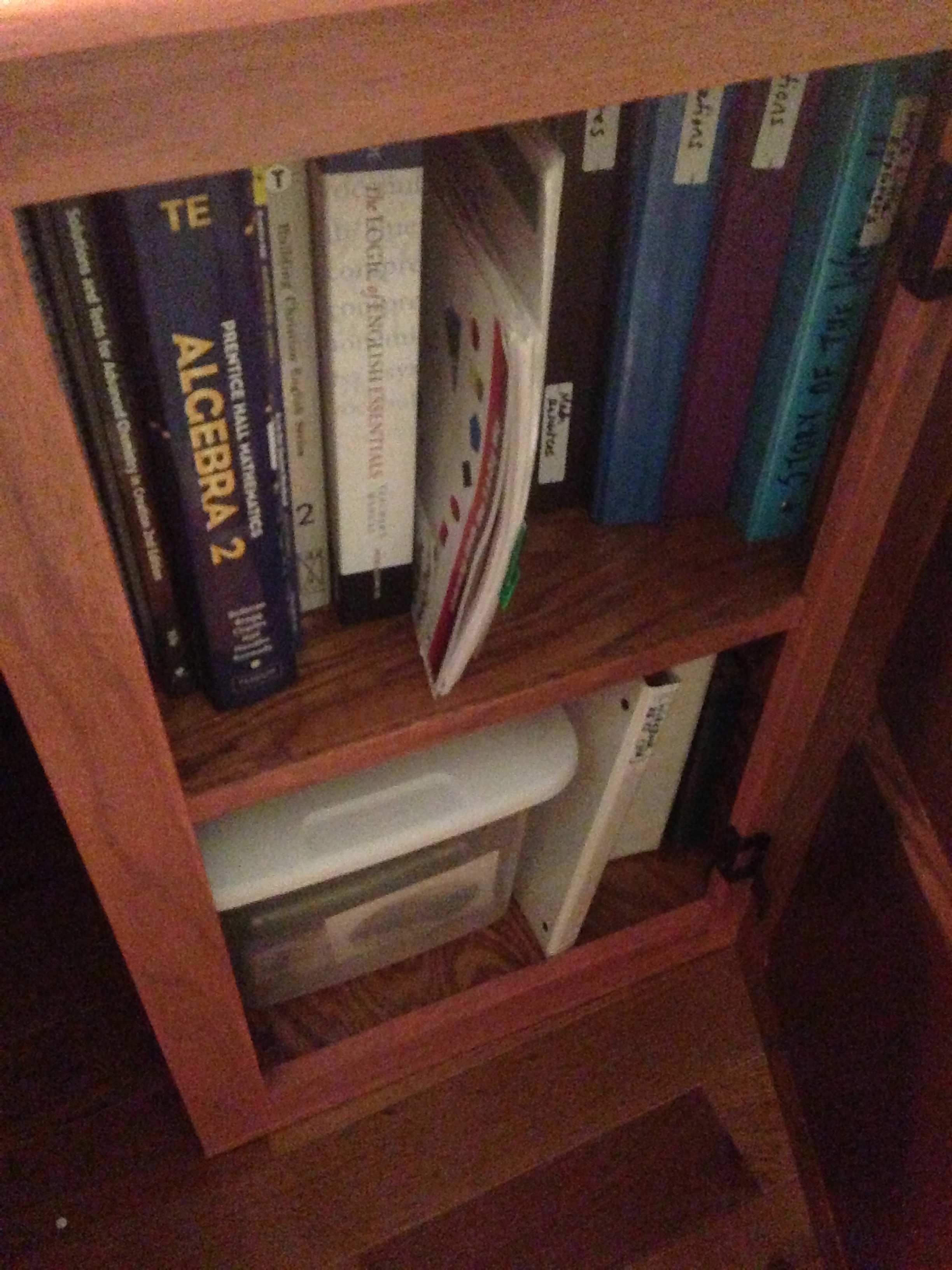 Yeah. I know. A big mess. But do you see those pencil pouches and shiny pencils there in the lower left corner? Oh yes, that was my first order of business: to finish organizing for the PENCIL WARS. Oh, you thought homeschool students and their teachers didn’t have issues with lost pencils and lack of pencils when needed?