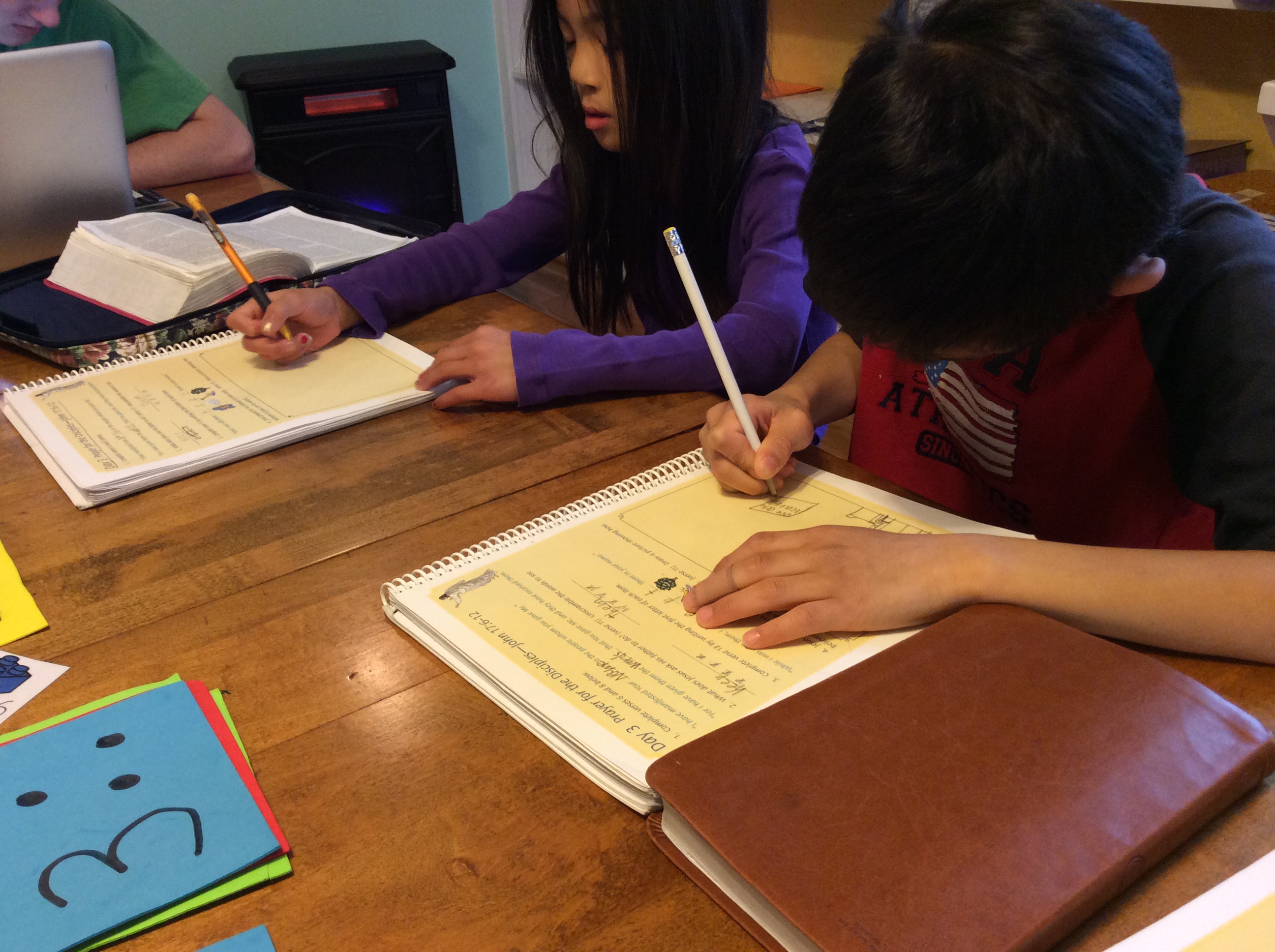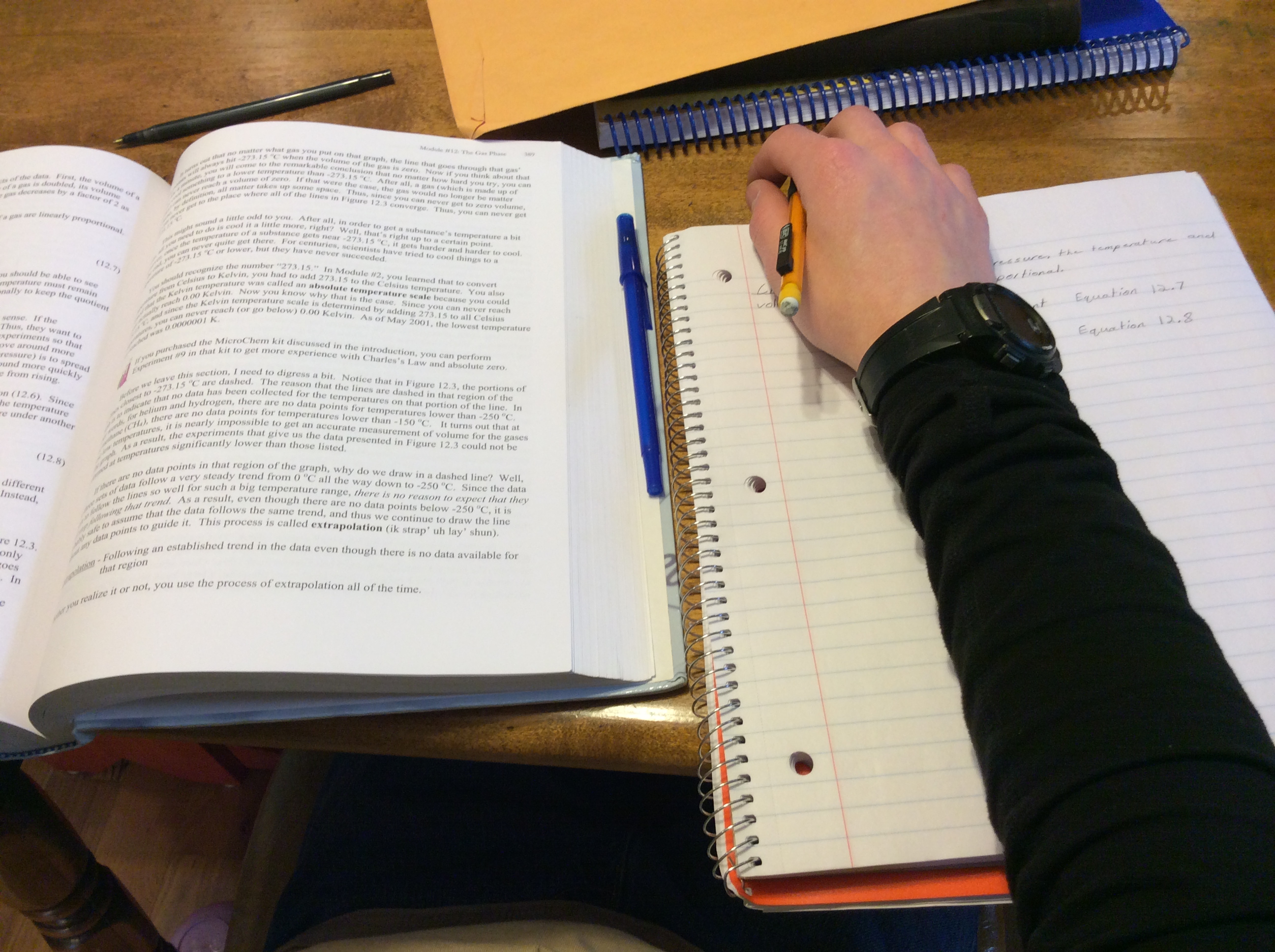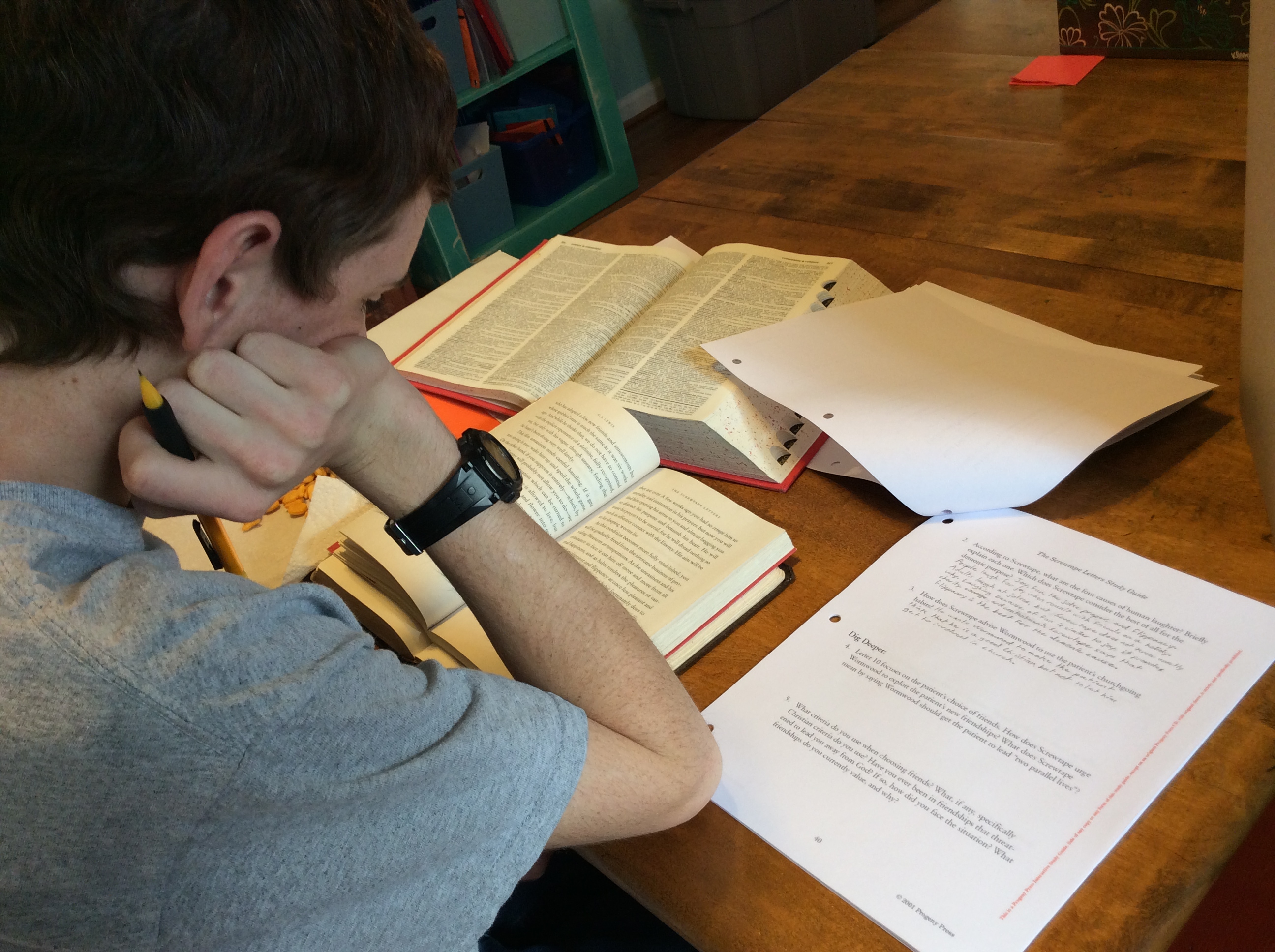 9th grader working on Chemistry class work