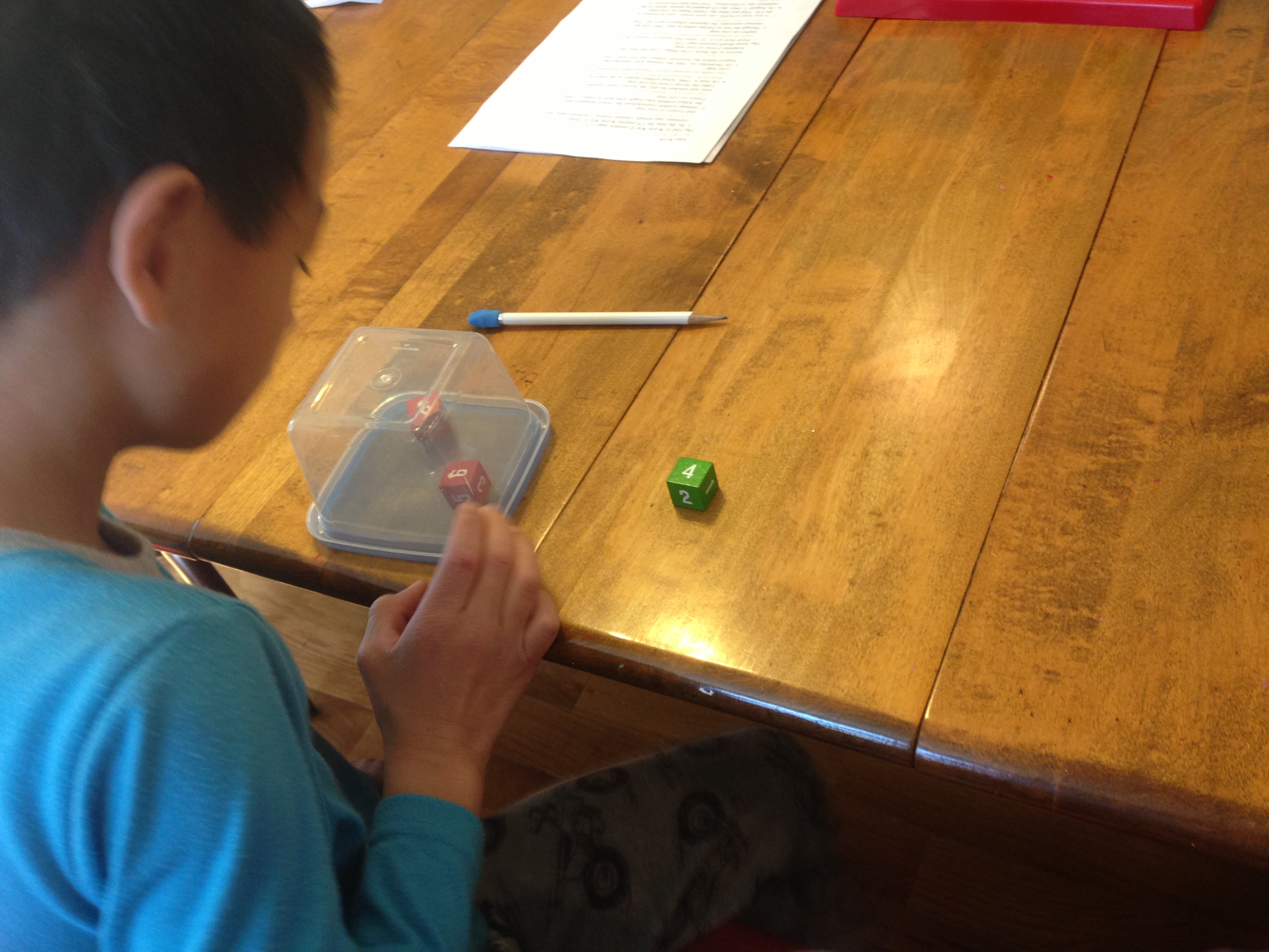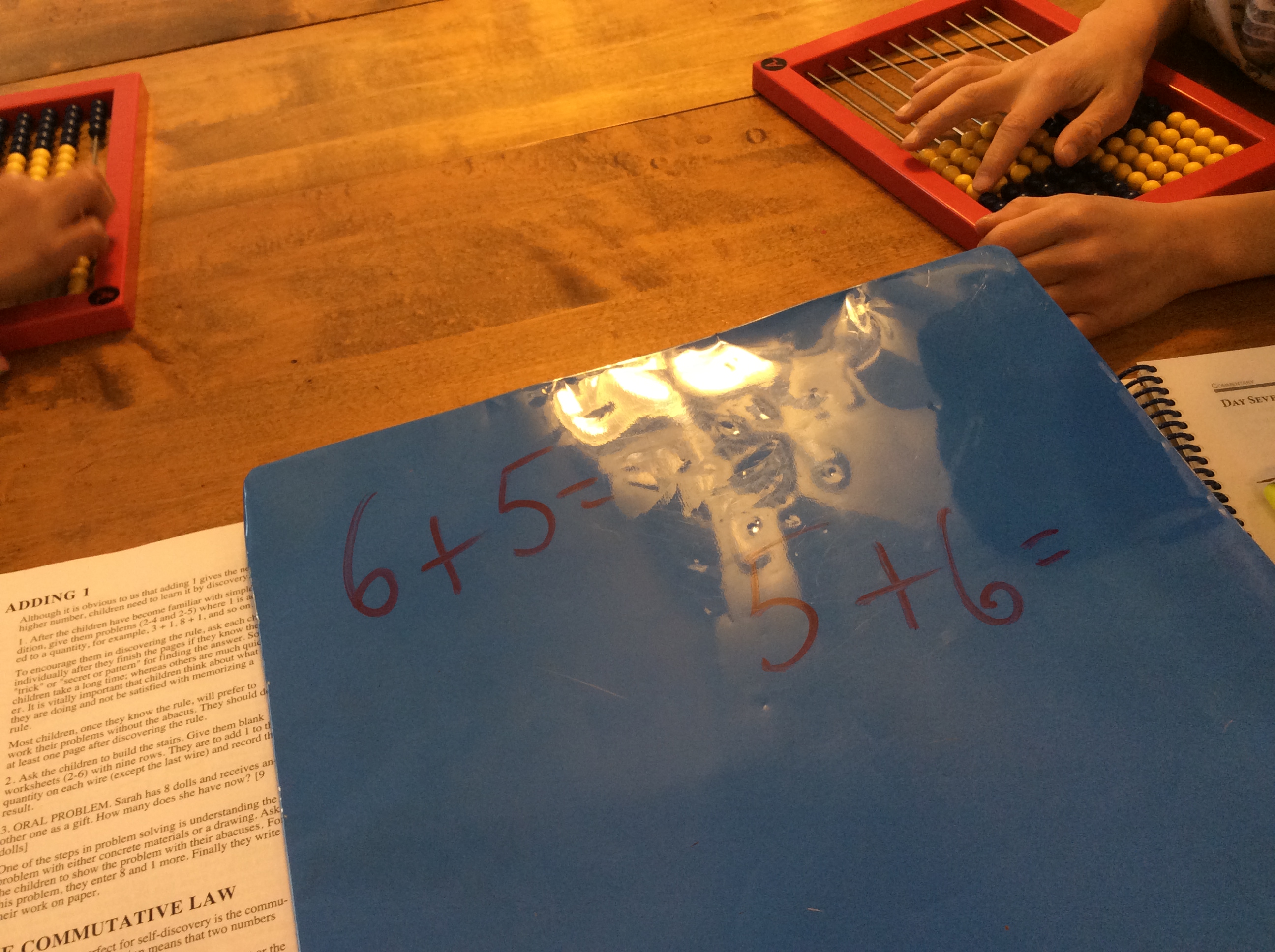 On the hard-rock maple table in our library