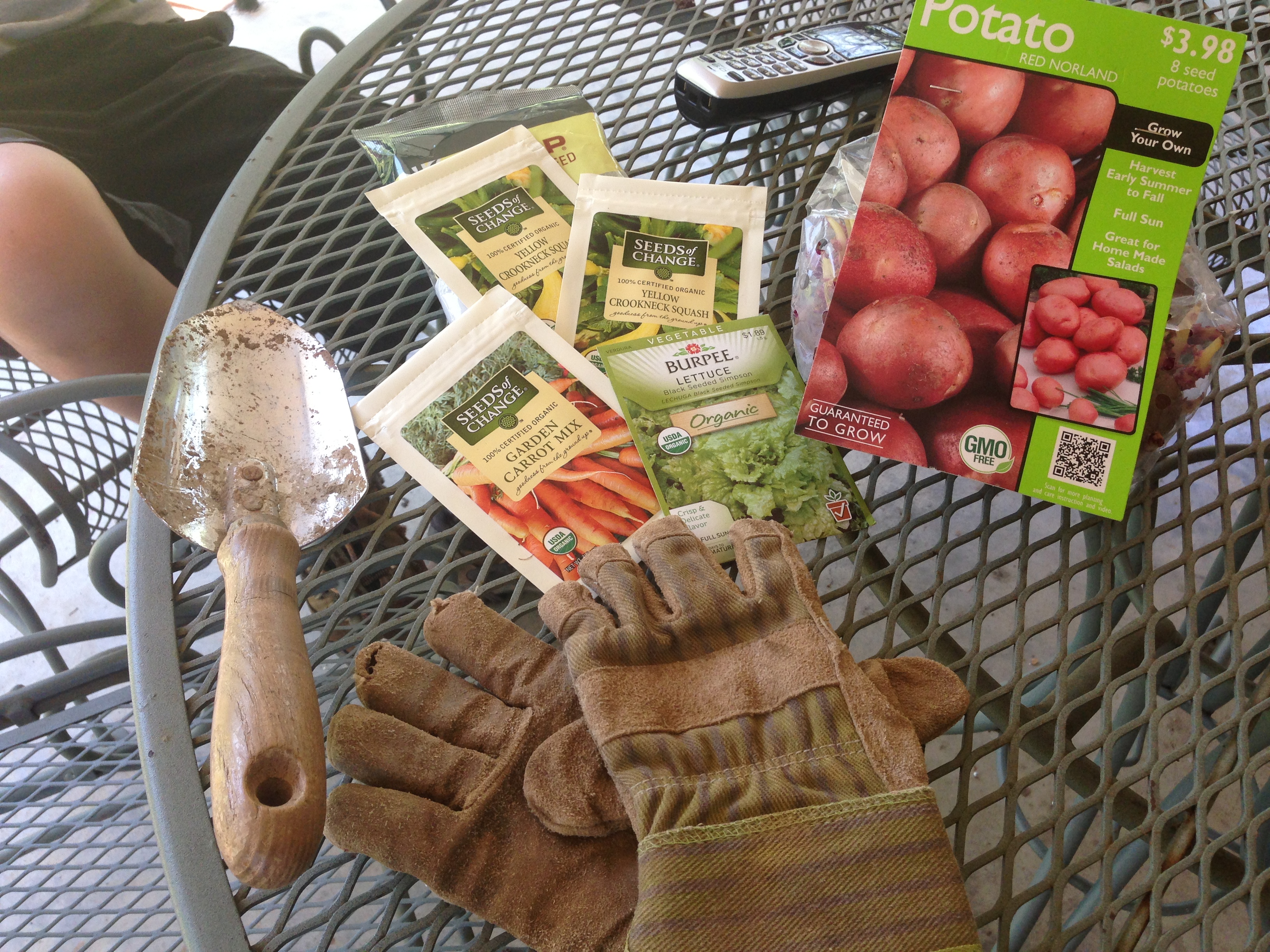 Seed packets, gardening gloves and tools, potato bulbs … yes, we’ve planted FOUR gardens of goodness. We can’t wait for our plants to flourish and provide. We hope to live off the land a lot this spring and summer. We shall see.